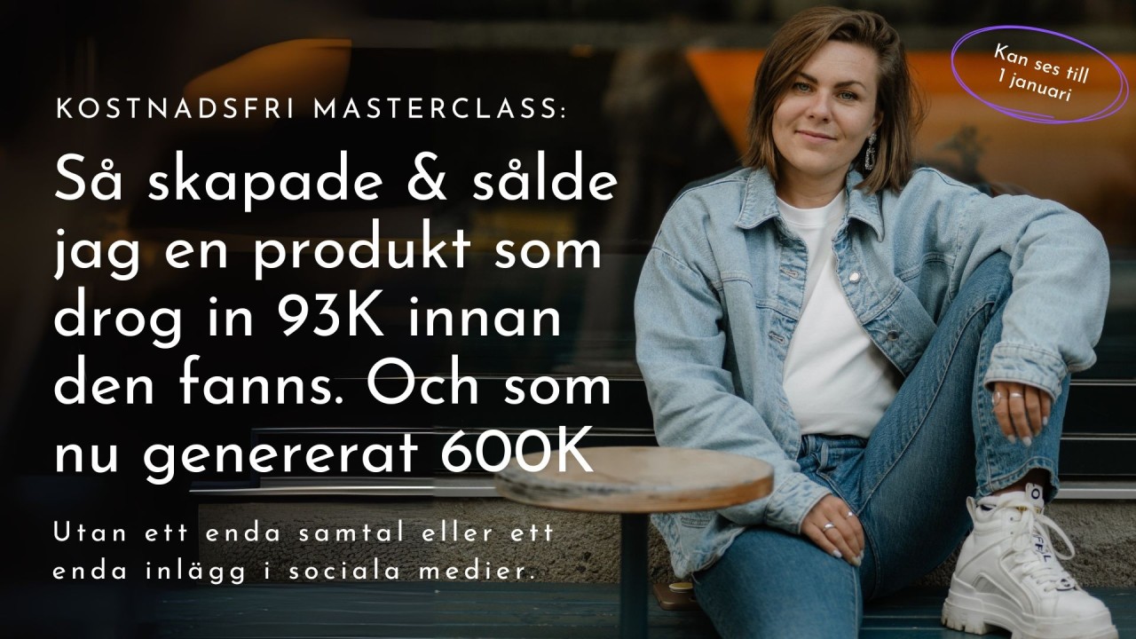 I den här masterclassen delar jag med mig av exakt hur jag gjorde för att lansera en produkt för 93.000 kr + moms, innan den fanns. Därefter dra in ytterligare 219.000 kr direkt via erbjudandet - och så småningom generera totalt över 600K + moms via merförsäljning. Dessutom med i princip 100% vinstmarginal!